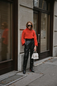 Βάλε το δερμάτινο παντελόνι με ένα ζευγάρι μπότες μέχρι το γόνατο.