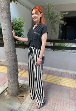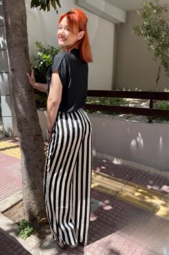 Γυναικείο Ασπρόμαυρο Ριγέ Φαρδύ Παντελόνι