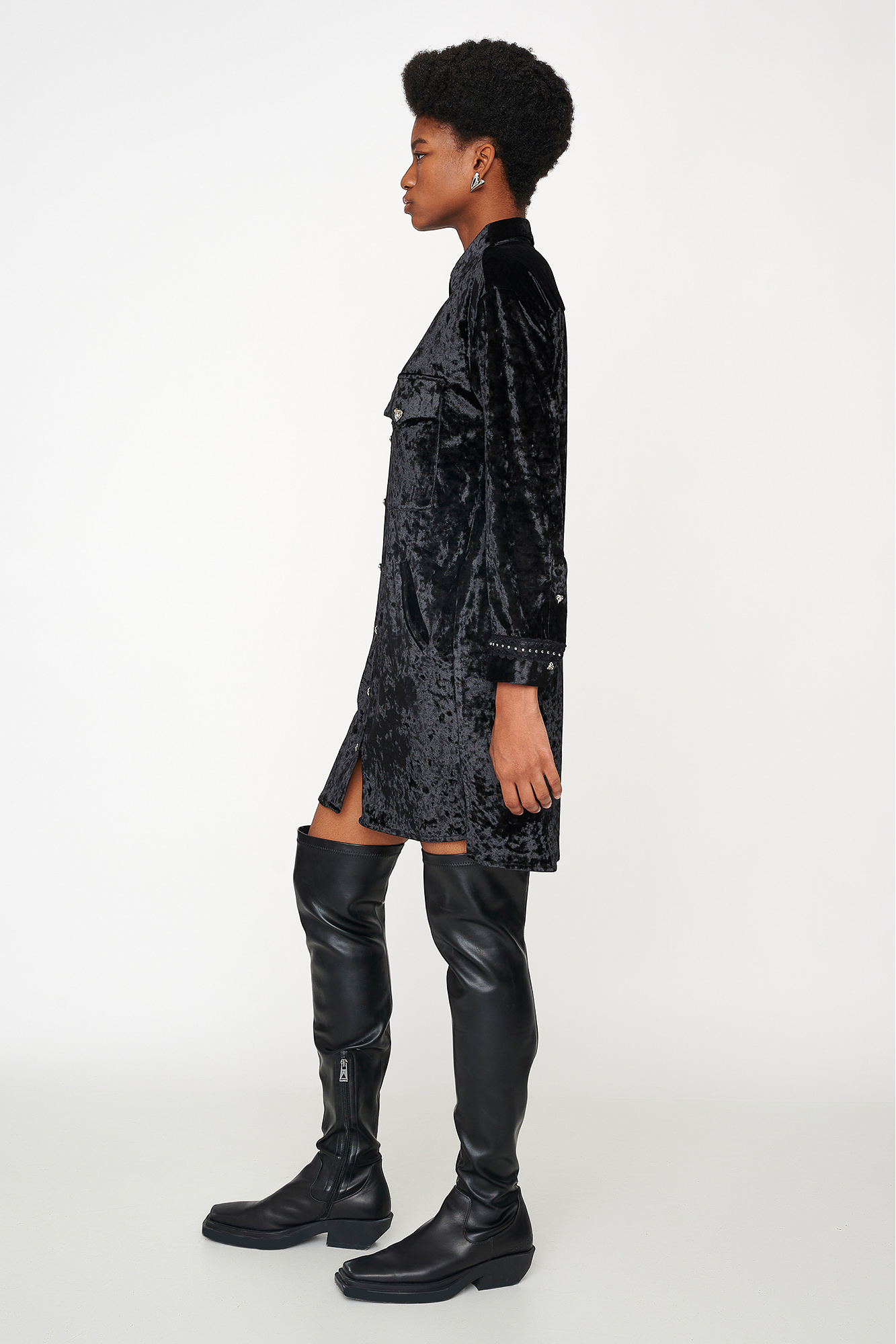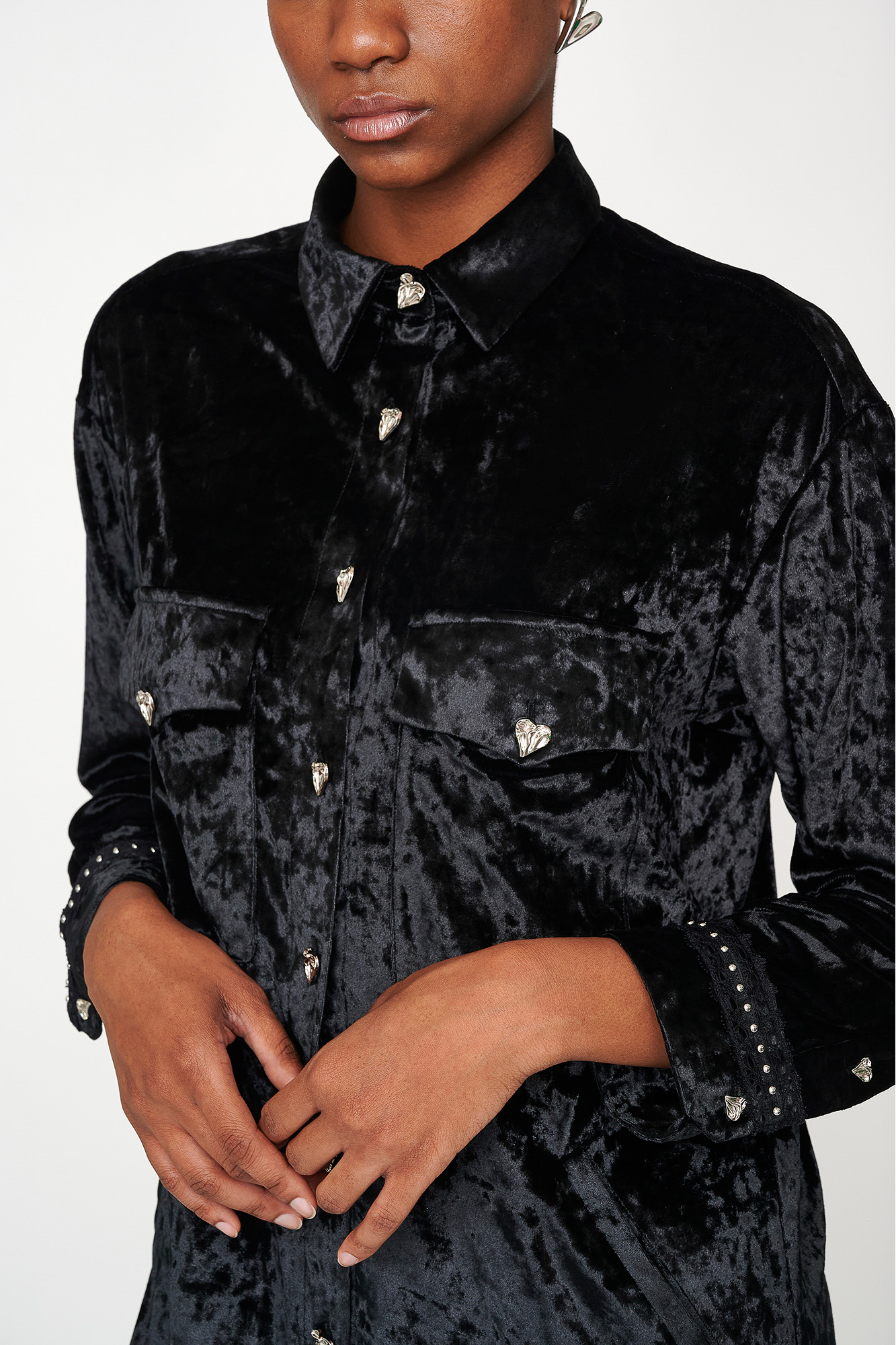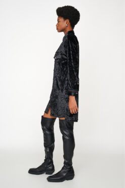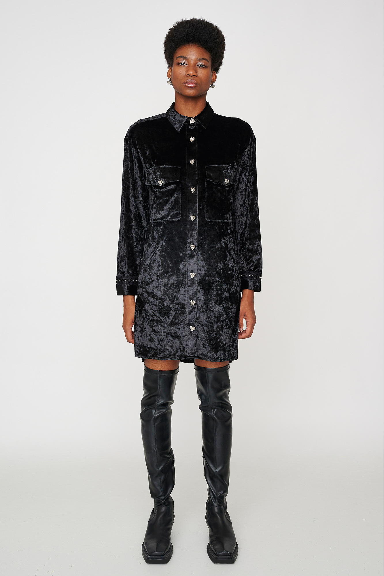 Γυναικείο Μαύρο Βελούδινο Πουκαμισοφόρεμα SYD