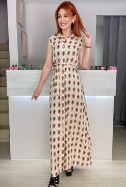 Γυναικείο Maxi Φόρεμα Σεμιζιέ με Κουμπιά